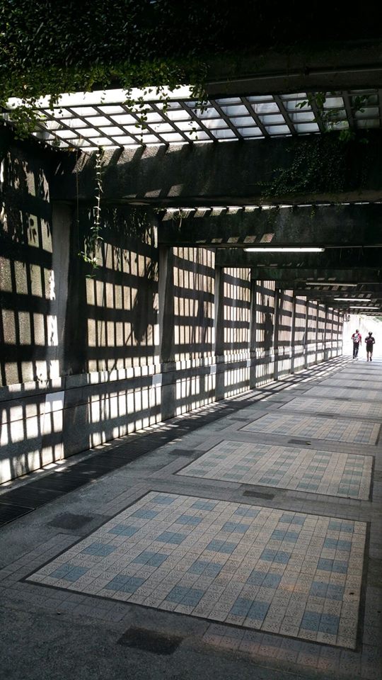 墙上、地上、头上处处都是格子,相映成趣。(读者提供)
